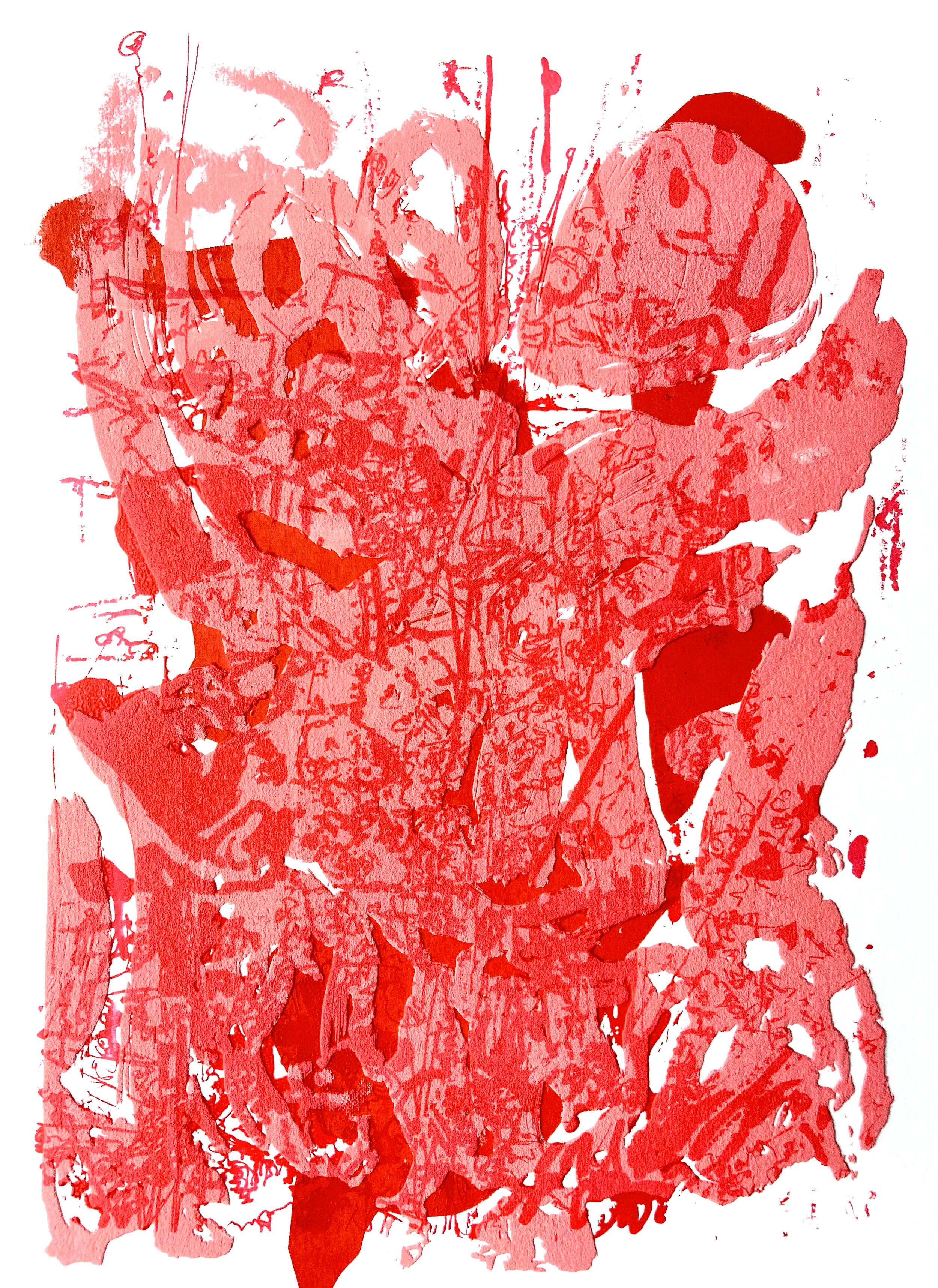 Untitled, 2022, 5 Colour Screen print with puff additive on paper, 38 x 28cm